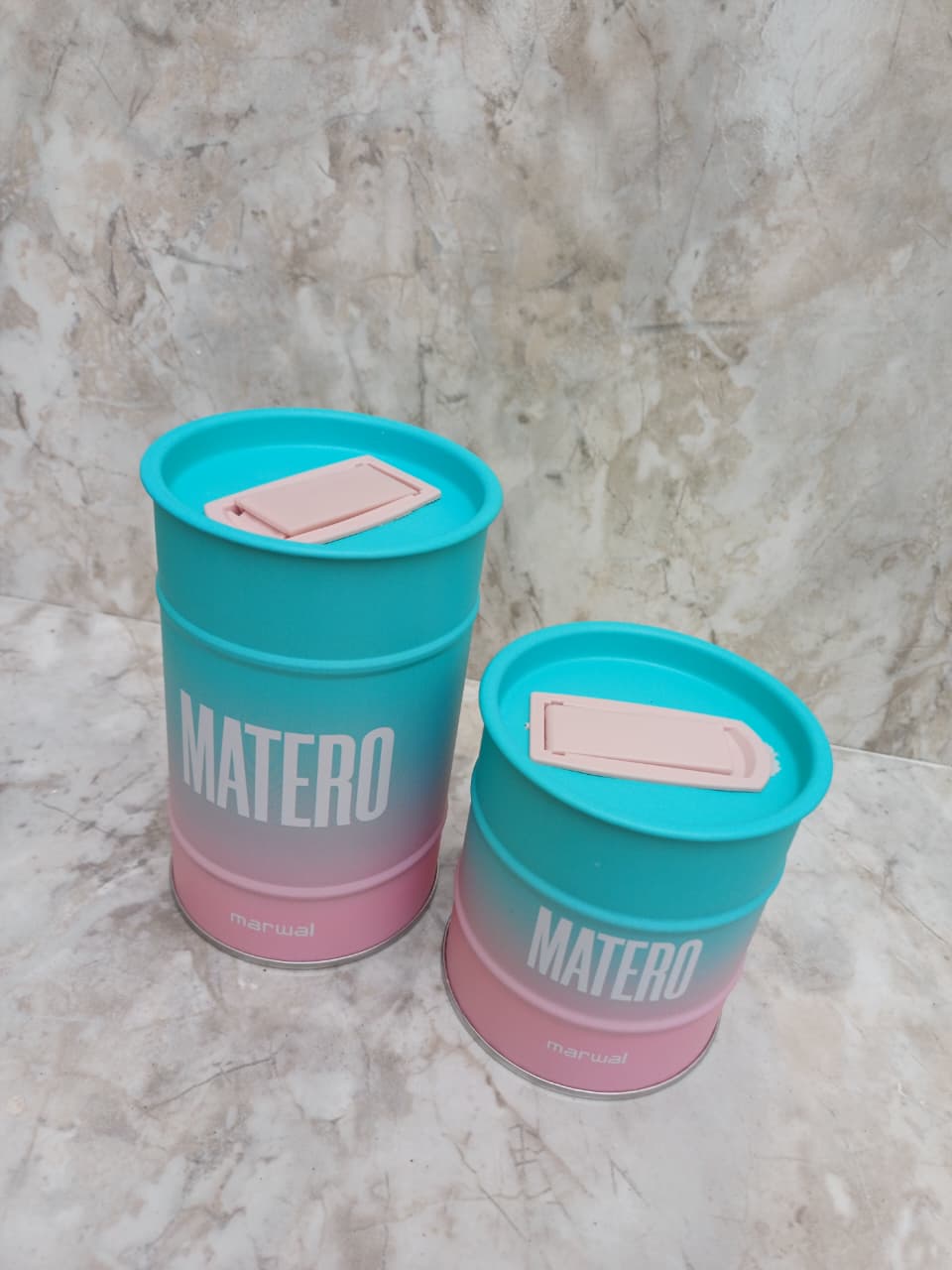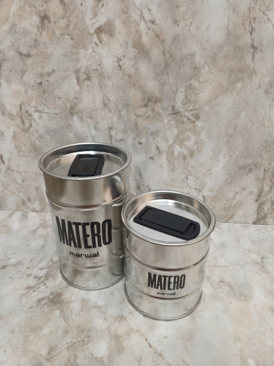 FABRICADOS EN ACERO, RESISTENTES PARA EL USO DIARIO. NO TOMAN OLOR, NO SE DEFORMAN Y SE LIMPIAN FÁCIL. CUENTAN CON CIERRE FIRME PARA MANTENER LA YERBA Y EL AZÚCAR BIEN PROTEGIDOS DE LA HUMEDAD.